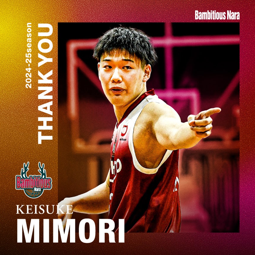 この度、三森啓右選手が、バンビシャス奈良との契約が6月30日をもって満了となり、鹿児島レブナイズへ移籍することとなりましたのでお知らせいたします。