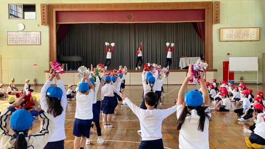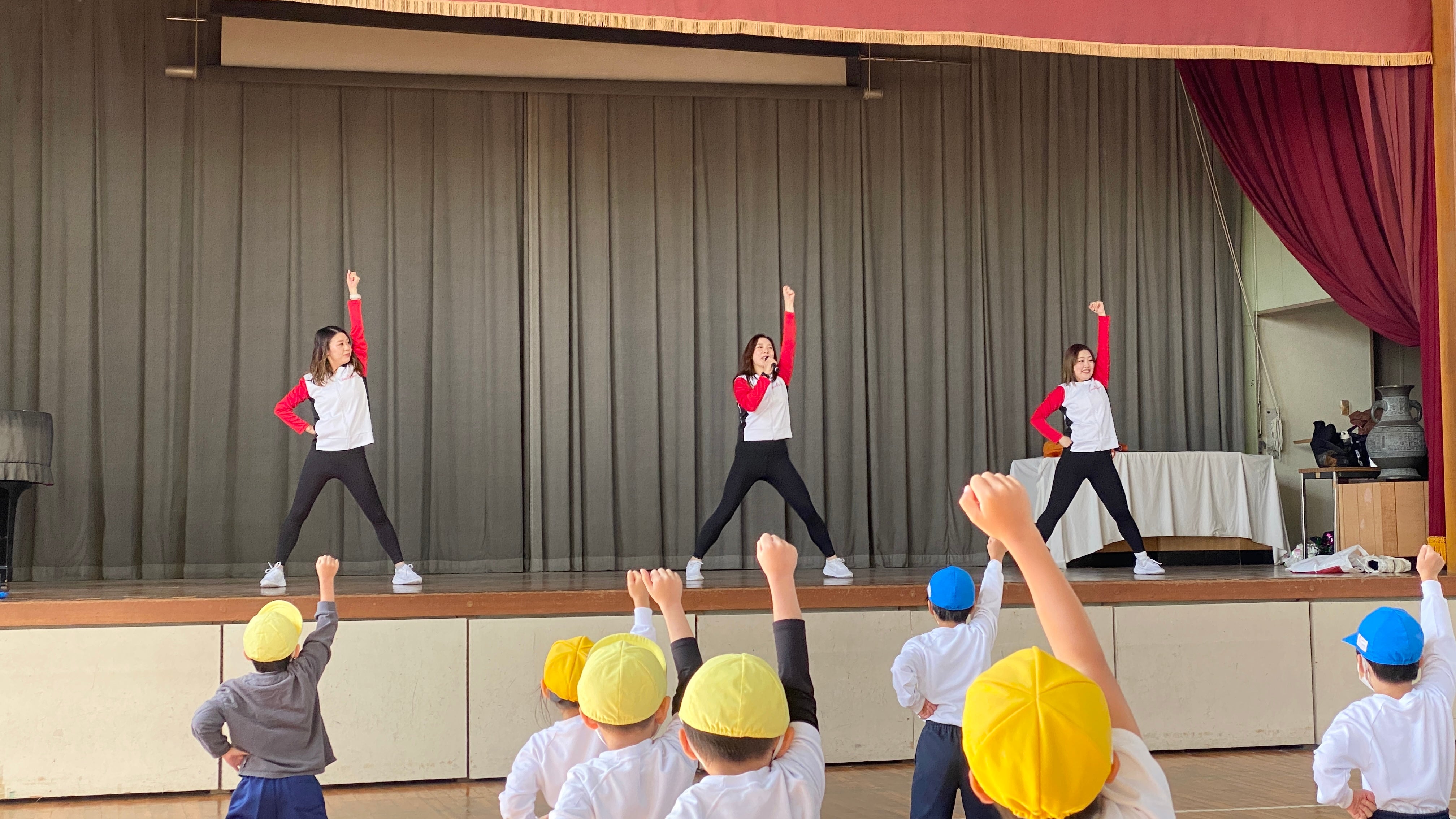 10月29日、バンビーナスのアサミ、ミオ、ユキが、奈良市立三碓小学校を訪問し、みんなでダンスを練習して、披露しあいました。