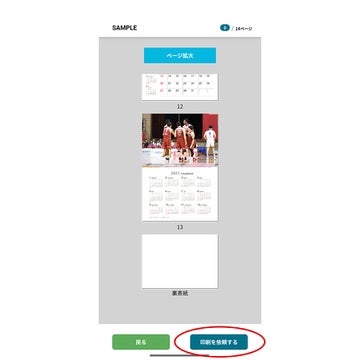 ⑦編集の終了:2027年の年間カレンダーが最終ページとなり、裏表紙は編集不可となります。すべてのページの編集が完了したら、「プレビュー」へ。