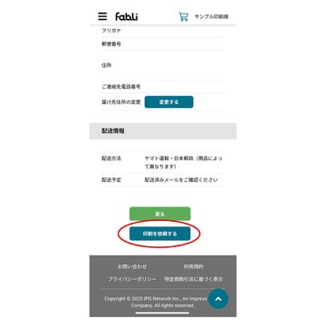 ②最終確認:送り先住所等を確認し、「印刷を依頼する」を選択すると、発注完了になります。
