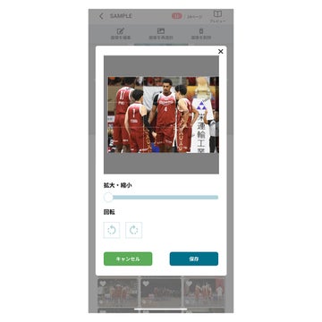 ⑥写真の移動:選択した画像を枠に合わせて動かすことができます。