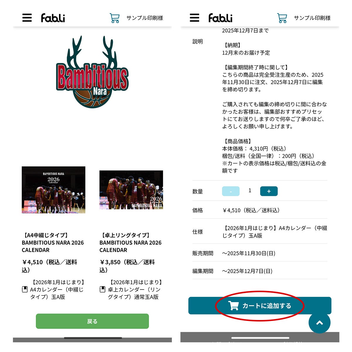 バンビシャス奈良 2026カレンダー受注販売開始