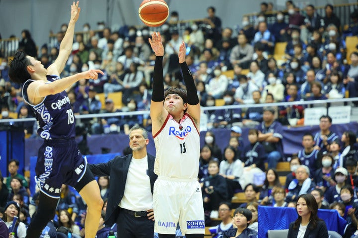 スターティング5は、#0 小林遥太選手、#4 ジェイミン・ブレイクフィールド選手、#11 ナイジェル・スパイクス選手、#18 相馬卓弥選手、#24 本多純平選手です。