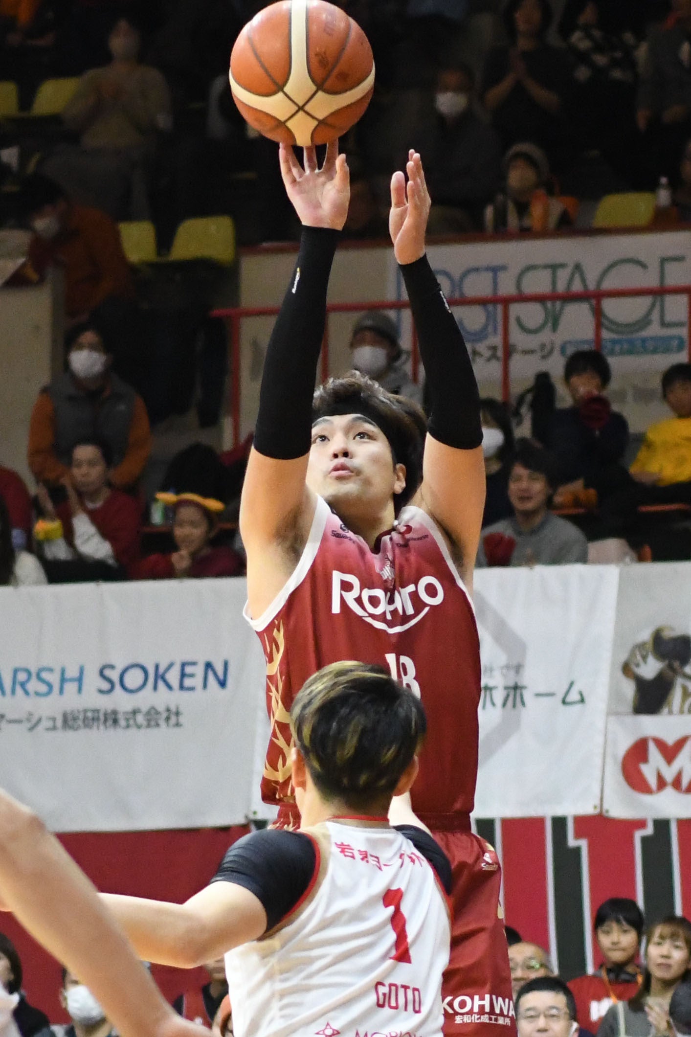 立て直しを図りたい3Qでしたが、ミスがあり6失点から入ってしまいます。しかし、相馬選手のオフェンスリバウンドから本多選手が3Pシュートを決めると、ディフェンスリバウンドからのアーリーオフェンスで相馬選手が得点、さらにブレイクフィールド選手のスティールからの速攻で#14 坂口竜也選手がフィニッシュすると、岩手にタイムアウトを取らせます。タイムアウト明けも、相馬選手のキックアウトから本多選手が試合3本目のスリー、相馬選手がジャンプシュートを決めるなど、ベテランがチームを引っ張ります。#20 石井峻平選手も力強いアタックを見せましたが、46-58と点差はわずかにしか縮められませんでした。