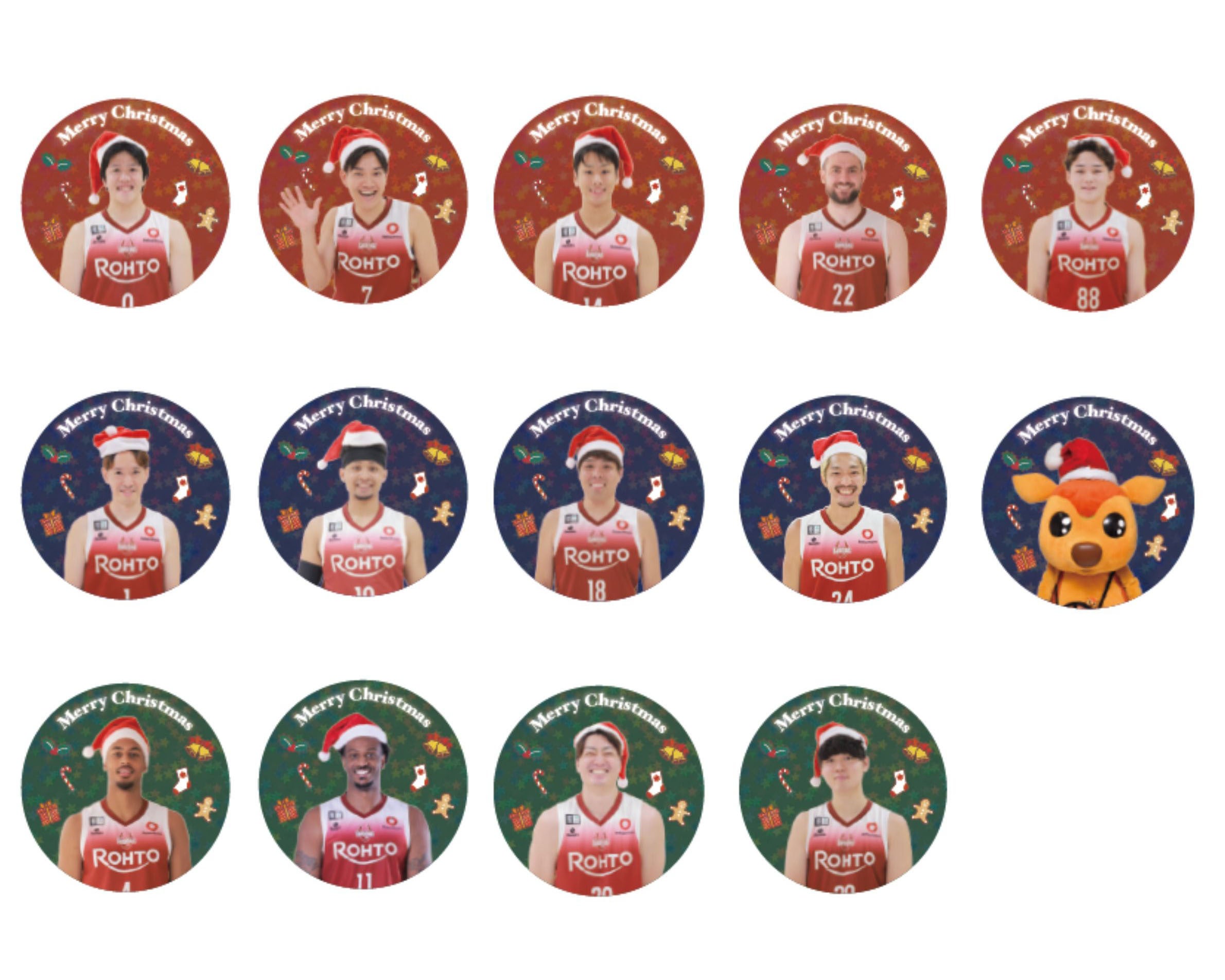 サンタ帽を被った選手とシカッチェの缶バッジ!
