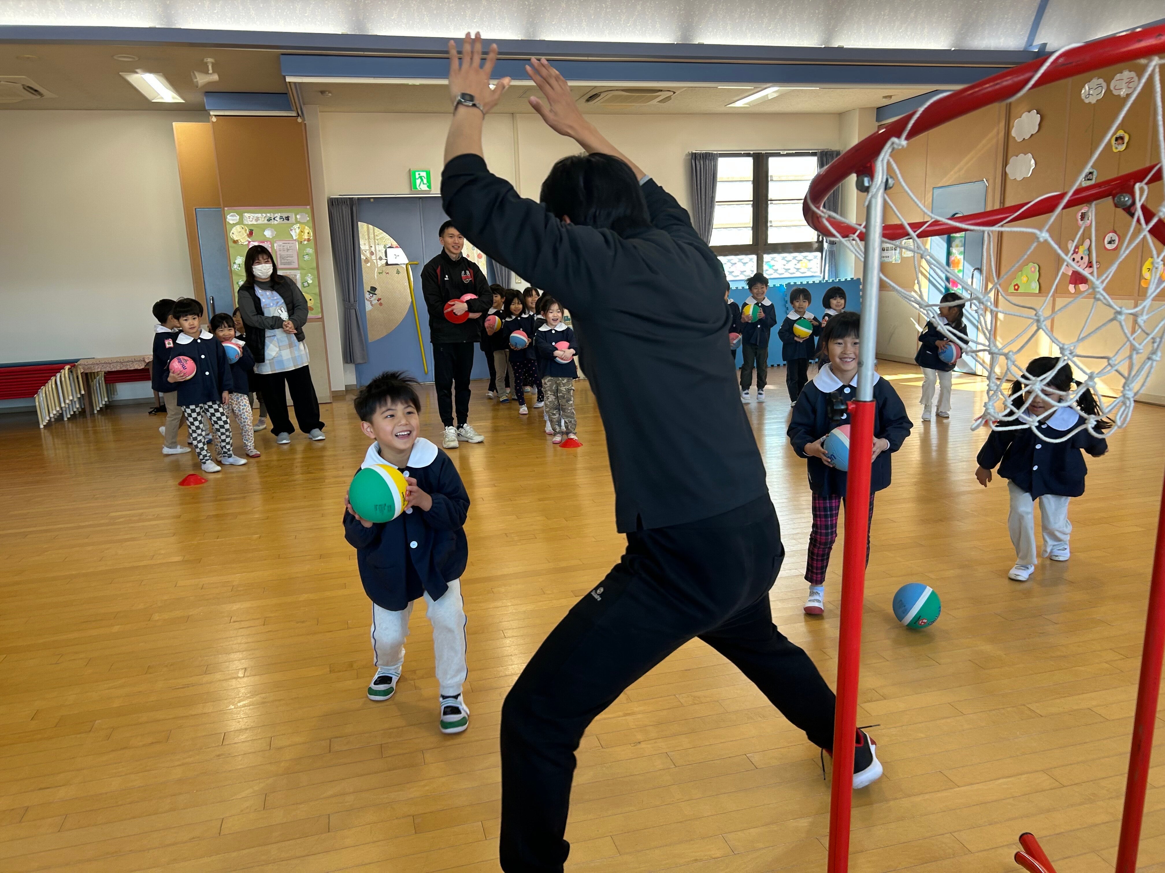 短い時間ではありましたが、園児のみんなが楽しそうにバスケットボールにチャレンジしてくれて、スクールコーチ陣もうれしく思いました。