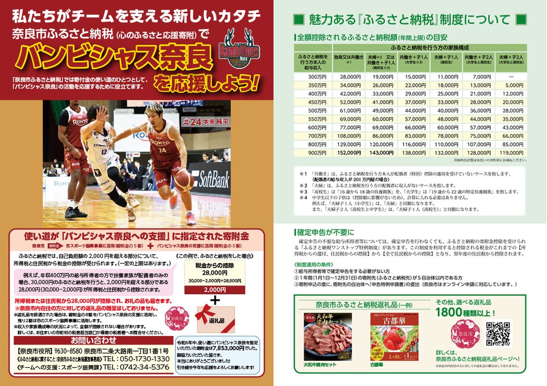 ぜひ、奈良市心のふるさと応援寄附で、バンビシャス奈良の応援をよろしくお願いします。
