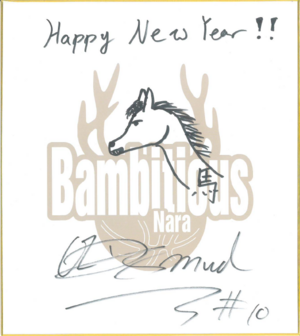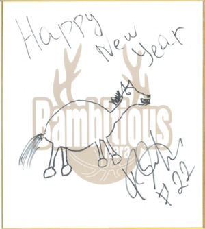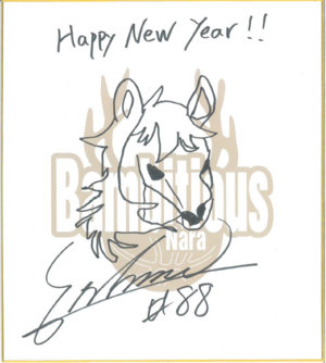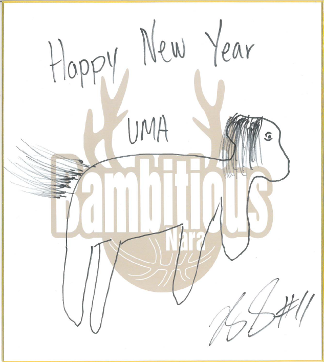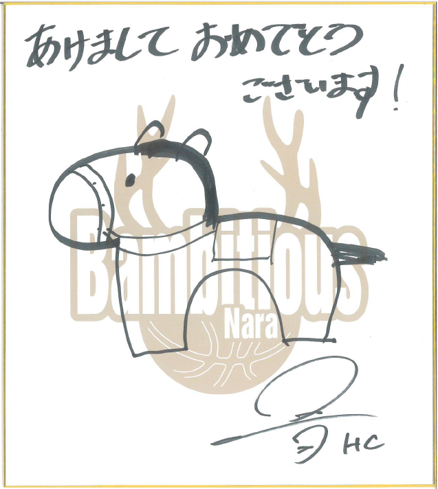 1月3日、4日開催の、新年最初のホームゲーム、福井ブローウィンズ戦にて、HCと選手が描いた「サイン入り 午の絵色紙」が、グッズブースでのガラガラ抽選会の景品として登場します!