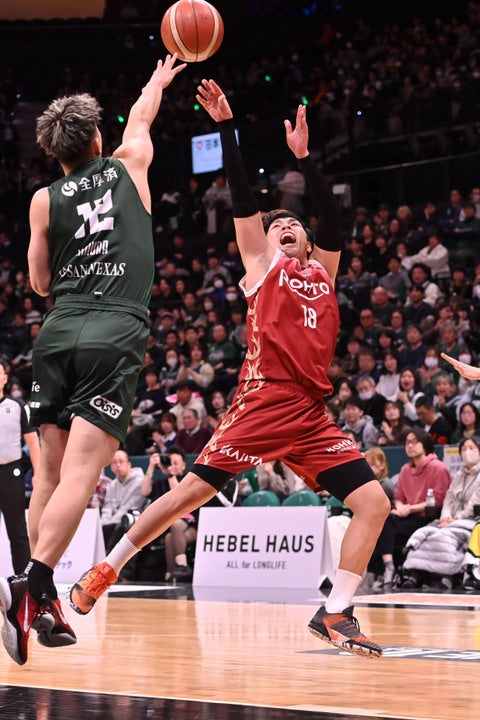 スターティング5は、#0 小林遥太選手、#4 ジェイミン・ブレイクフィールド選手、#11 ナイジェル・スパイクス選手、#18 相馬卓弥選手、#24 本多純平選手。