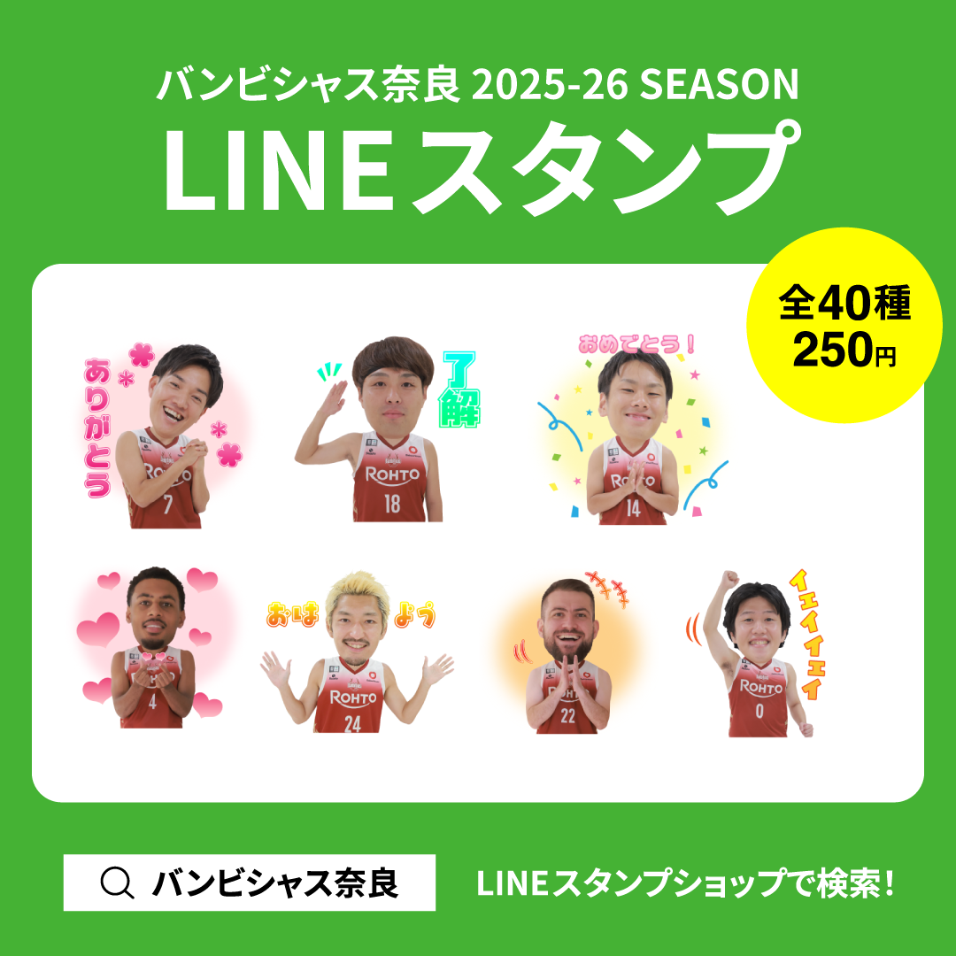 バンビシャス奈良では、2025-26シーズンの選手、HCのLINEスタンプを販売いたします。