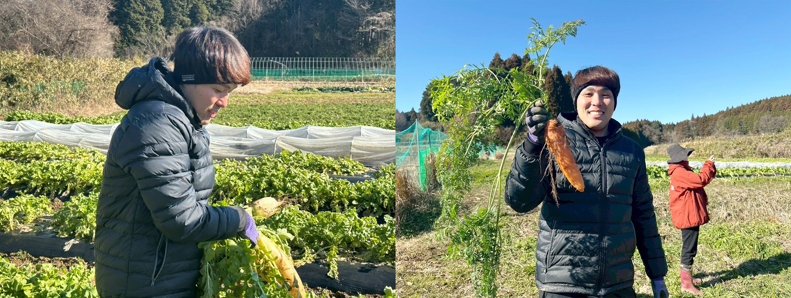 当日はよく晴れ、絶好の収穫日和!小林選手と相馬選手も、「楽しい!」と言いながら、参加者の皆さまと一緒に収穫を行いました。ご参加いただいた皆さま、ありがとうございました。
