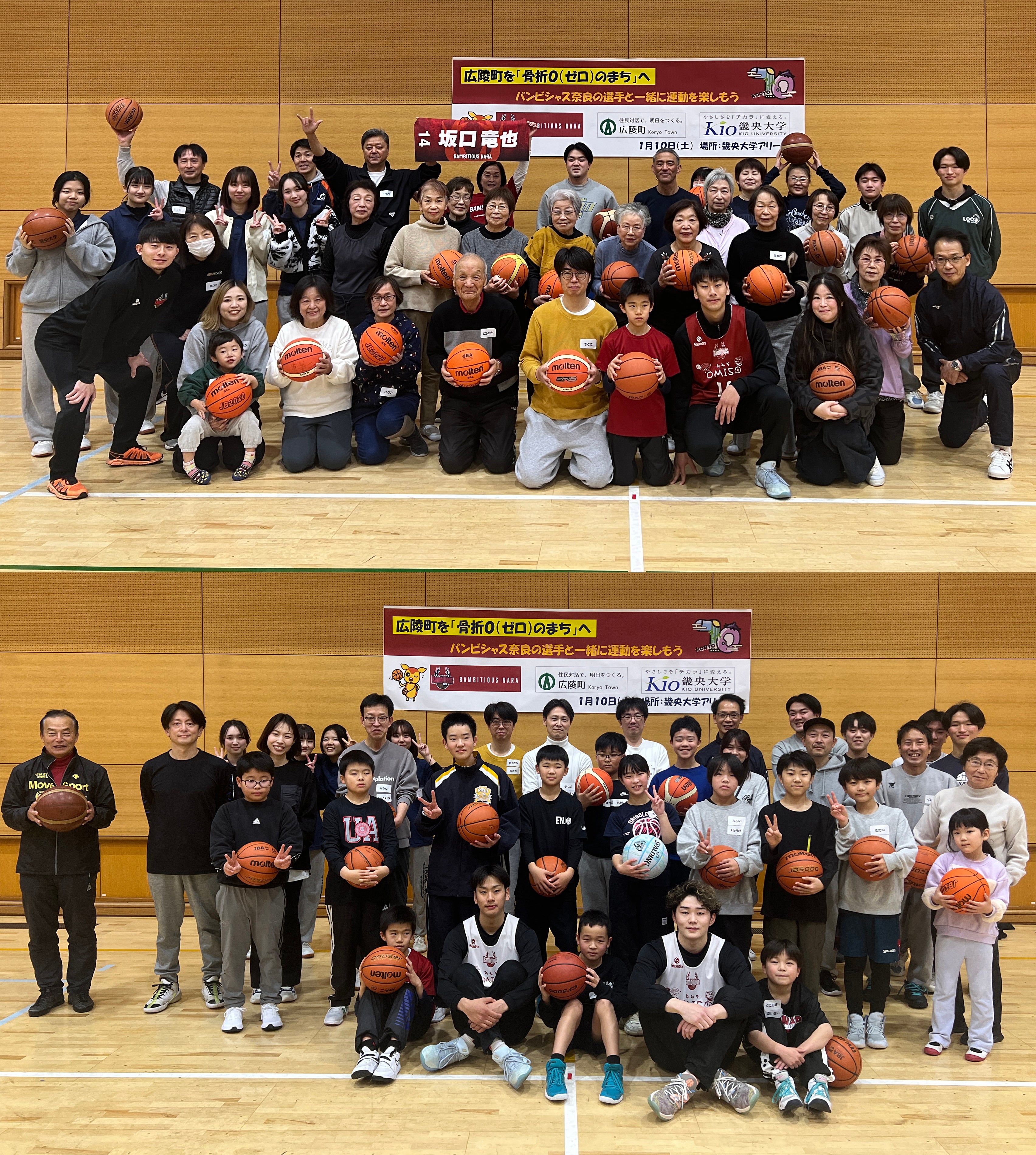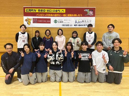1月10日、広陵町が「骨折0(ゼロ)のまちへ」というスローガンのもと畿央大学と連携して実施するイベントに、坂口竜也選手と中谷衿夢選手、宮本タオアスレティックトレーナーが参加しました。