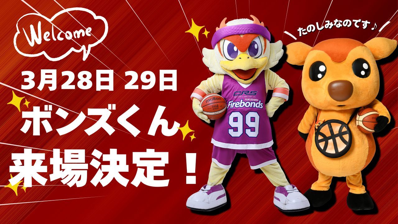NEW GAME 2026.01.23 <3/28-29>「ボンズくん」来場決定! いつもバンビシャス奈良を熱く応援いただき、ありがとうございます。 3月28日、29日に開催するホームゲーム“福島ファイヤーボンズ戦”に、福島の公式マスコットキャラクターの「ボンズくん」の来場が決定しましたので、お知らせいたします! シカッチェと一緒に、両チームの応援を盛り上げてくれます💛💜 ボンズくん 身長:150cmくらい 出身地:福島県 福島県の鳥、“キビタキ”がモチーフ!