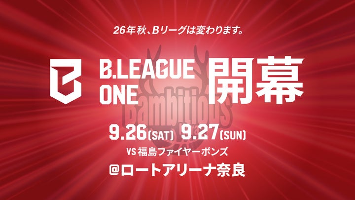 B.LEAGUE ONE 西地区に所属するバンビシャス奈良の開幕節は、9月26日、27日にホームのロートアリーナ奈良に福島ファイヤーボンズを迎えます。