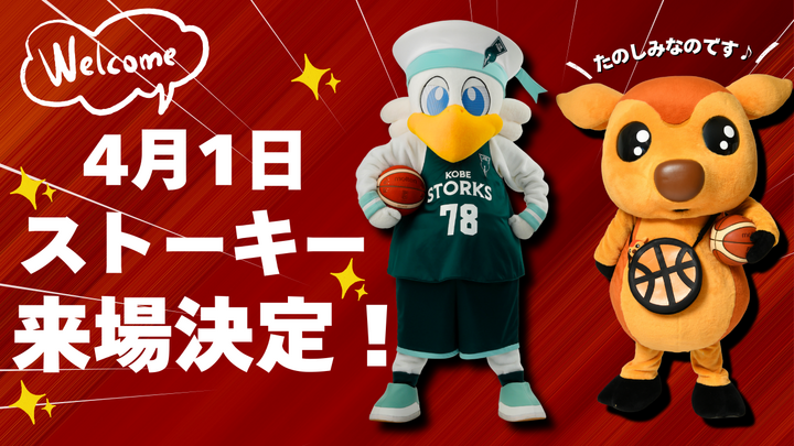 4月1日に開催する、奈良中央三菱自動車販売 presents ホームゲーム“神戸ストークス戦”に、神戸の公式マスコットキャラクター「ストーキー」の来場が決定しましたので、お知らせいたします!