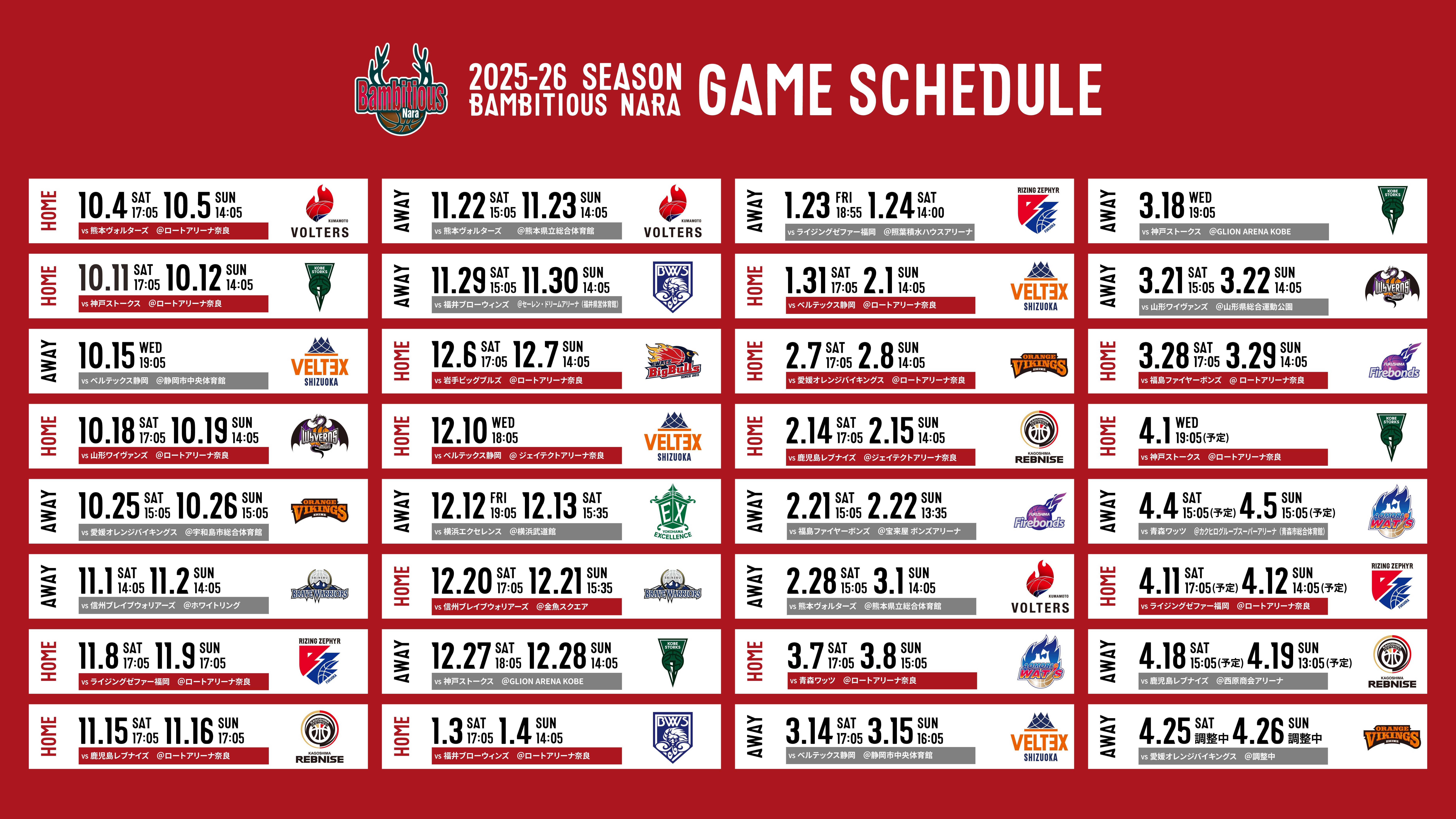 ※11/14更新※りそなグループ B.LEAGUE 2025-26シーズン 試合日程のお知らせ