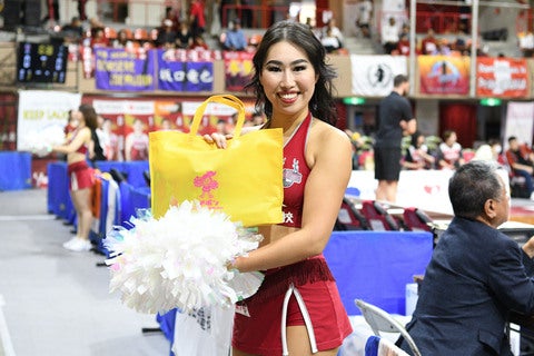 試合開始前の応援練習をがんばってくれた方に、チアポン様ご提供のポンポンをバンビーナスよりプレゼント(各日4名様)!