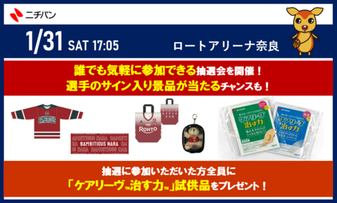 1月31日(土)、2月1日(日)は、ロートアリーナ奈良にベルテックス静岡を迎え、ホームゲームを開催いたします。皆さまのご来場をお待ちしております。