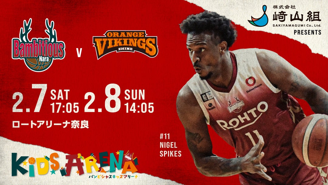 2月7日(土)、8日(日)は、ロートアリーナ奈良に愛媛オレンジバイキングスを迎え、﨑山組 presents ホームゲームを開催いたします。