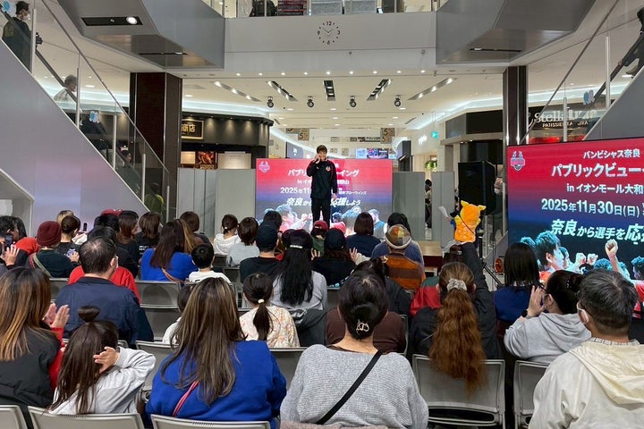 11月29日(土)、 30日(日)、バンビシャス奈良はアウェー、セーレン・ドリームアリーナ(福井県営体育館)で福井ブローウィンズと対戦しました。そして、この試合のパブリックビューイングを、29日はイオンモール橿原、30日はイオンモール大和郡山にて開催しました。