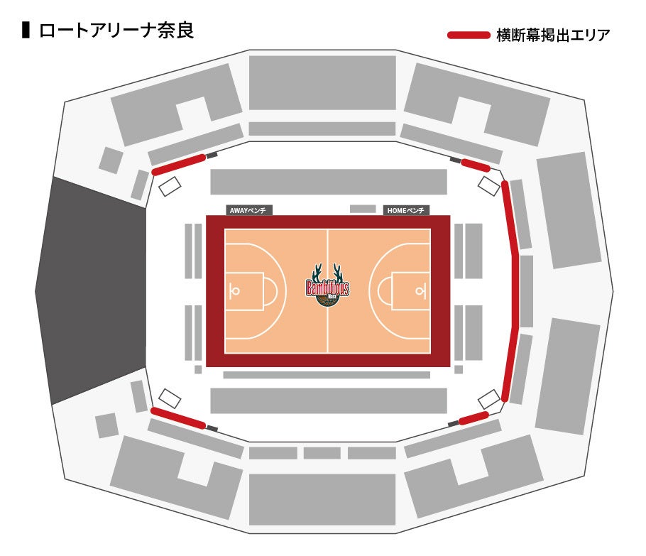 - バンビシャス奈良のホームゲームでは、選手及びチームを応援する内容の横断幕を掲出することができます。